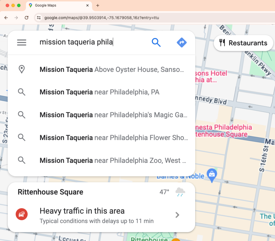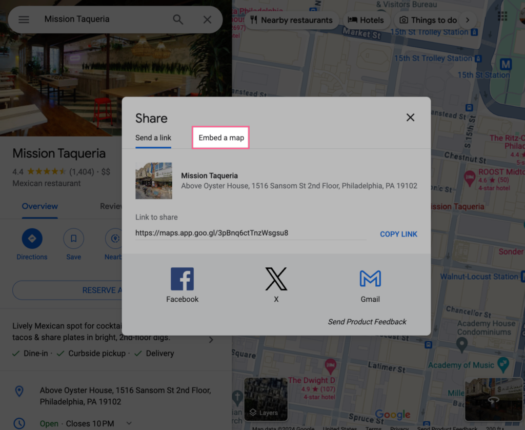1. Go to google.com/maps and enter your business name to pull up your Google Business Profile listing.