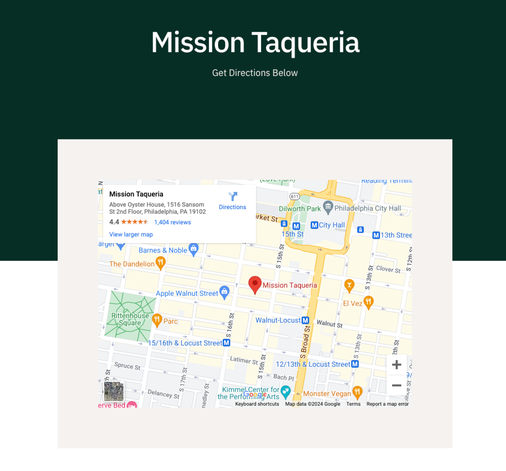 Note: Driving directions might be a Google Maps ranking factor. Google “may look at “popularity” signals such as how often people look up driving directions for businesses with locations that they can visit in person.” Make sure to embed the correct Google Map on yours site.