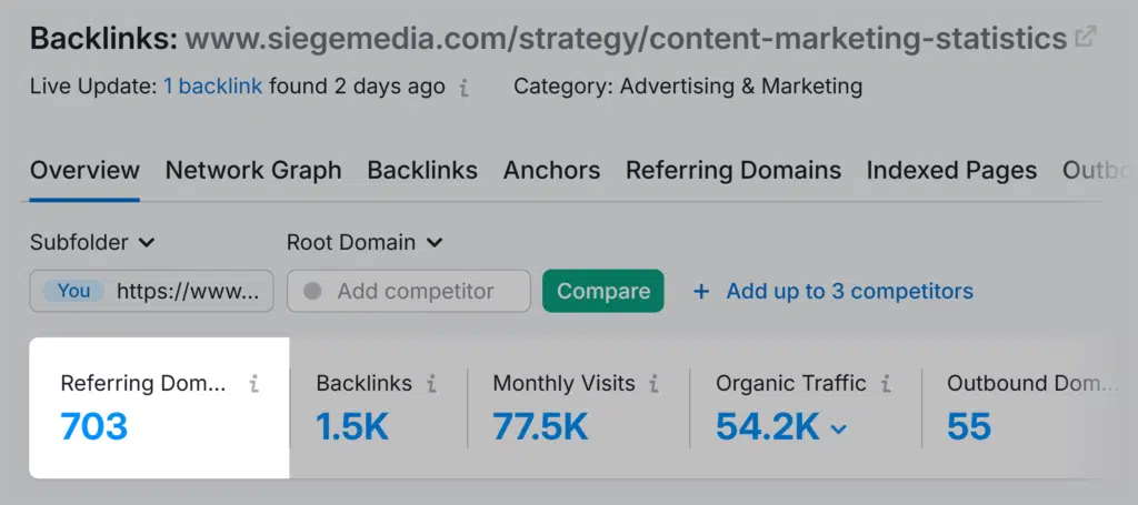 But the original data also enhanced a post on content marketing statistics, which earned backlinks from 700+ domains.