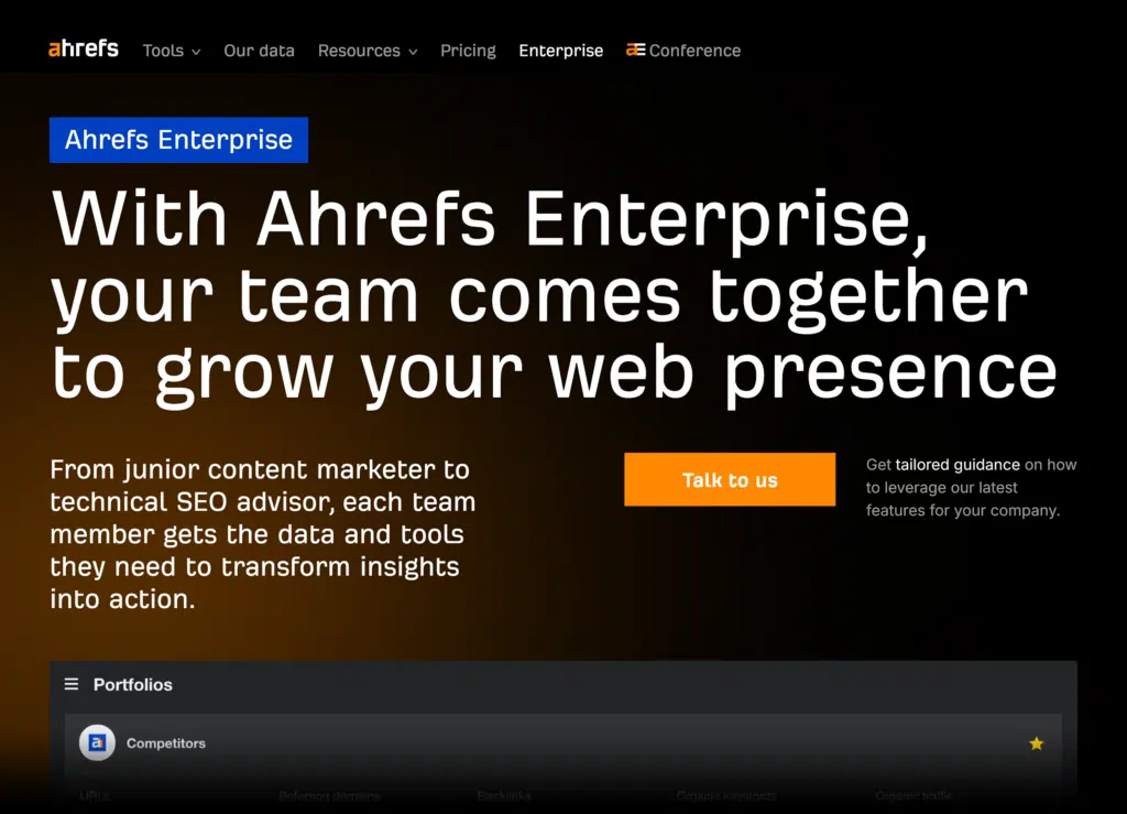 Ahrefs’ Enterprise plan starts at $14,990/year for 100 projects. With unlimited credits/month for three users.projects. With unlimited credits/month for three users.