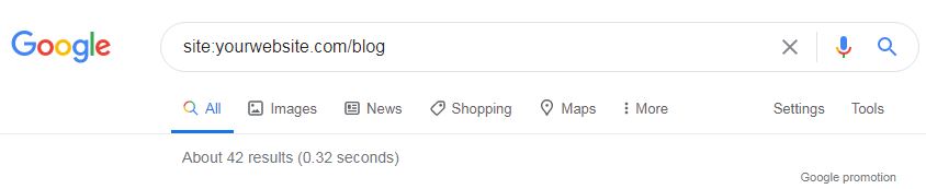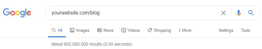 Let’s narrow down the search and check the number of indexed blog pages: