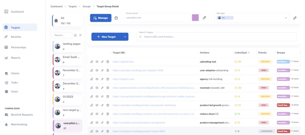 It lets you set up a dashboard to track link status, anchor text distribution, link building performance, expenses, and more. This helps you understand the effectiveness of your link building campaigns and the health of your overall link profile at a glance.