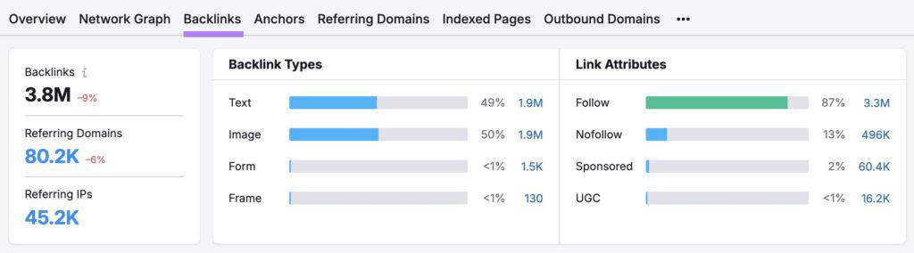 Navigate to the “Backlinks” tab to see more information about the link types and attributes.