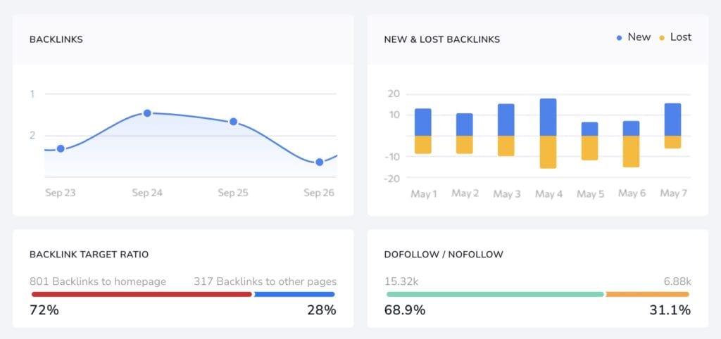 It can also show you new and lost backlinks for your domain. So you can monitor your link building efforts over time.