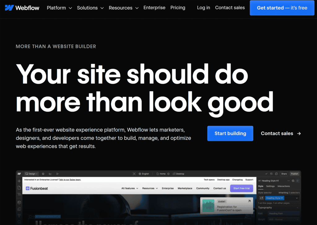 Webflow is great if you need to build professional websites. With a huge range of customization and design options at your disposal, it’s ideal if you want to create a unique experience for your clients and customers.