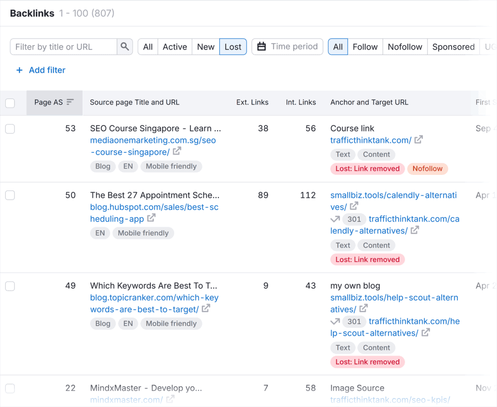 A backlink analytics tool that tells you lost backlinks can help you identify sites to contact.