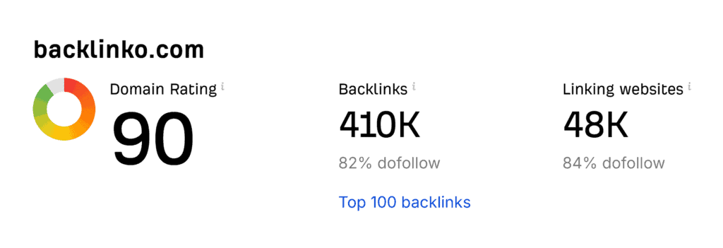 Domain Rating is entirely based on the links pointing to your site. Unlike Semrush, it doesn’t take into account traffic or spam factors.