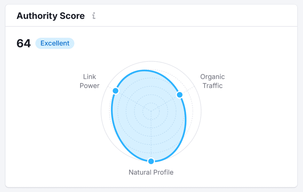 Semrush’s Authority Score (AS) is the platform’s proprietary metric for assessing website authority, going from 0-100 on a logarithmic scale. This means it’s more difficult to go from an AS of 50 to 51 than it is to go from 20 to 21.