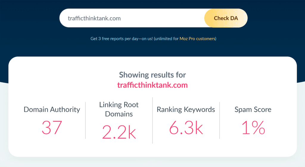 Moz was the original tool to feature an authority metric, with Domain Authority (DA).