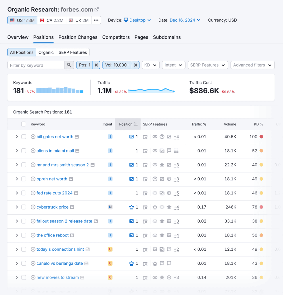 Website authority is the reason major sites like Forbes can rank for super competitive terms like “bill gates net worth” and “cybertruck price.”
