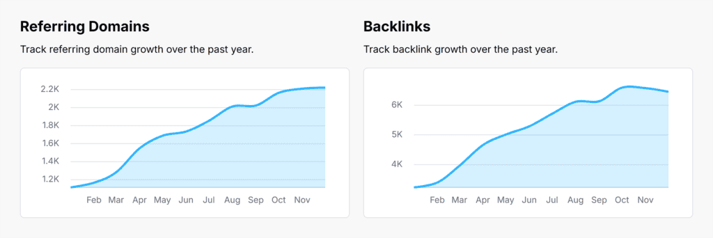 This is useful for understanding your own link profile of course. But it’s also handy for competitor research. For example, if you see a sudden spike in referring domains to your competitor’s website, you might want to see if they started a link building campaign around the same time.