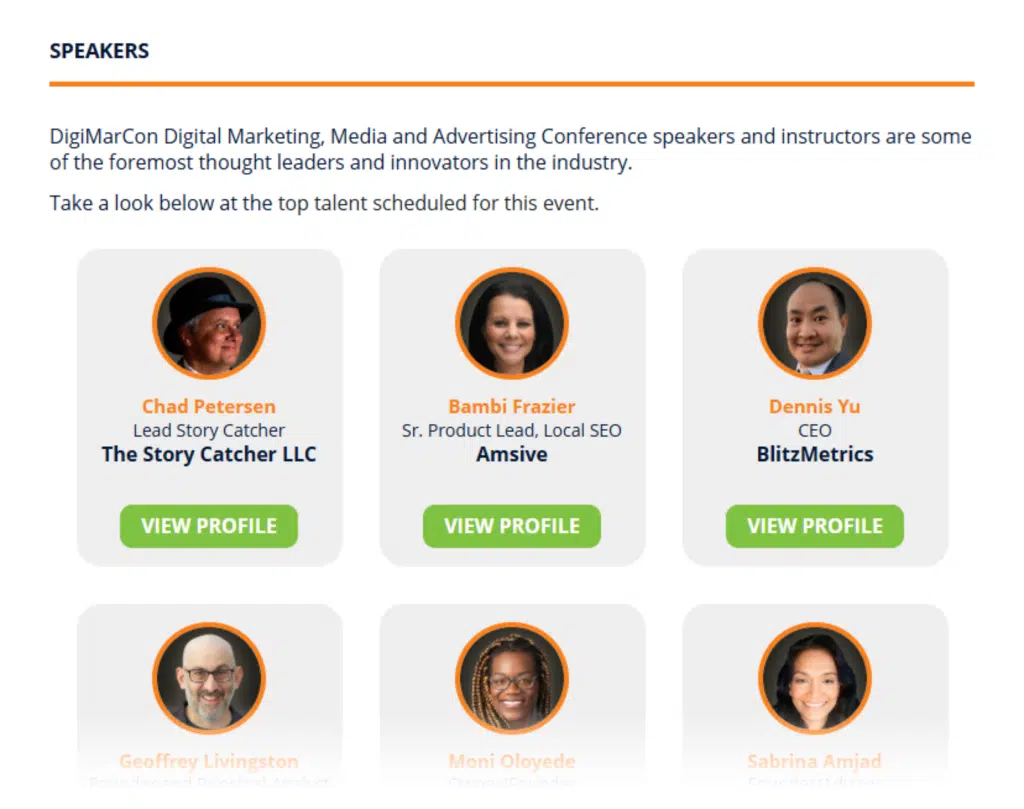 Create an engaging, SEO-optimized landing page for your event. Be sure to include key logistical details, speaker bios, FAQs, and other relevant information.