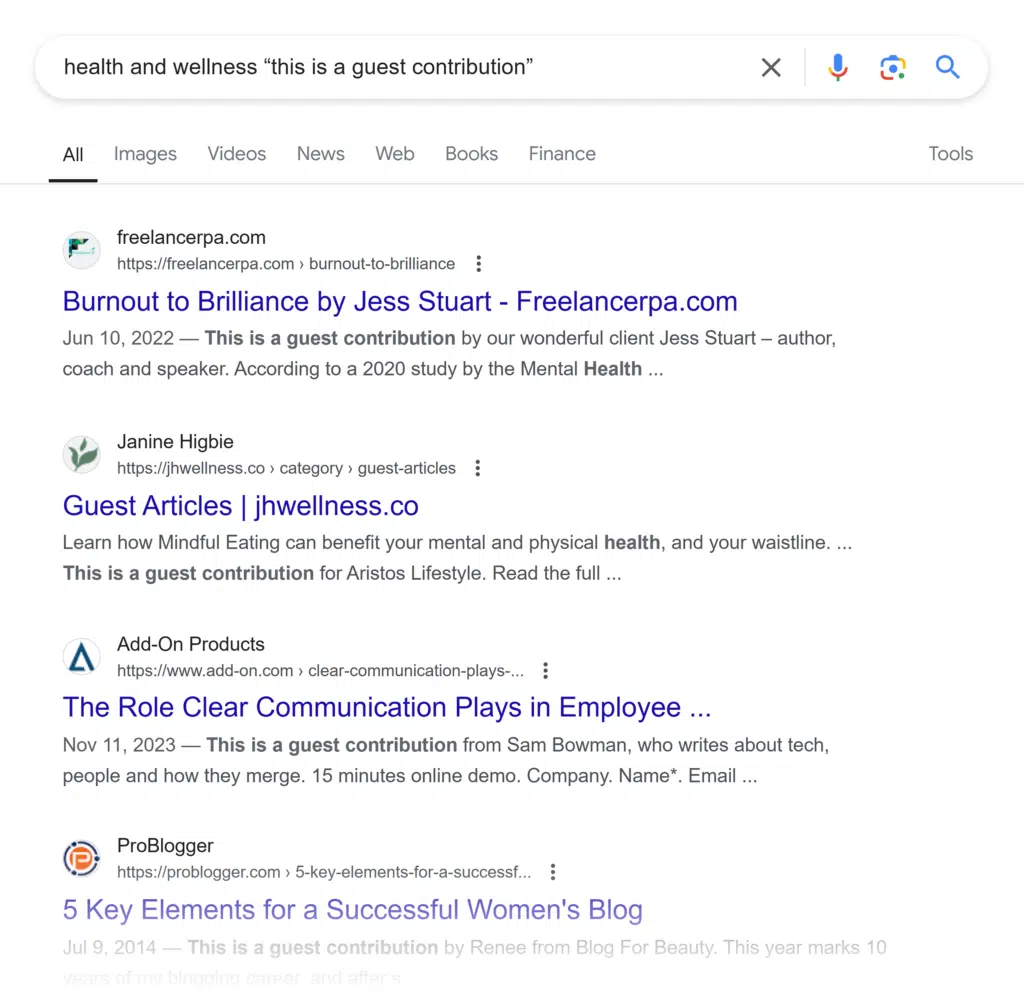 Find guest blogging opportunities by searching for your keyword on Google with operators like these: