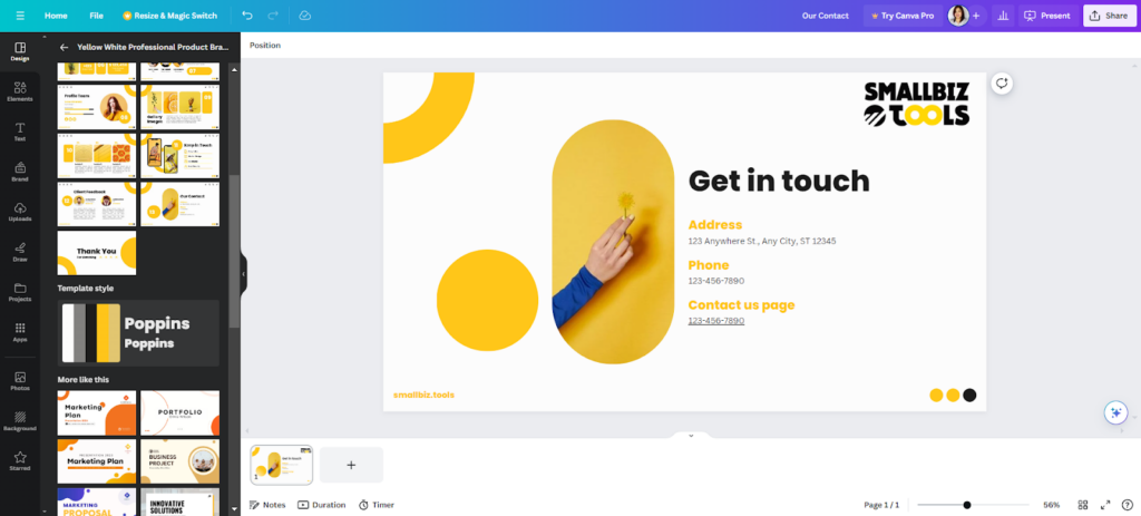 - Brand consistency: Use the brand kit to store your brand’s logos, color schemes, and fonts so that every piece of graphic you create aligns with your brand identity.