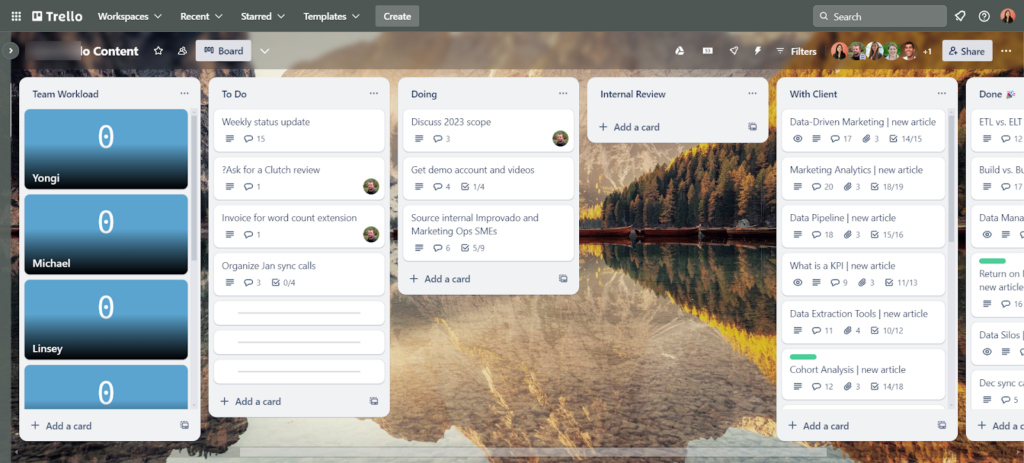 Trello is easy to set up and very straightforward to use. With its boards, cards, and lists structure, you can use it right out of the gate.