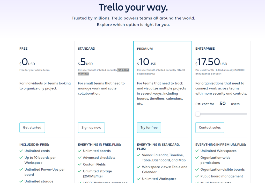 Price: Starts at $6/user/month, free account available with limited features and boards