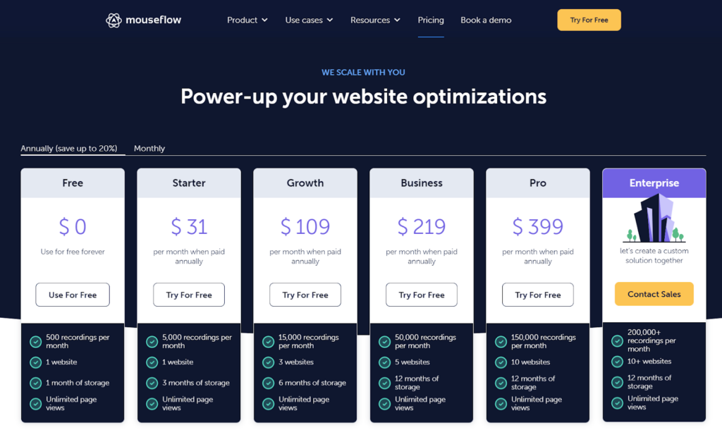 - Business: $499.95/month for 40 projects, offers API access and expanded limits