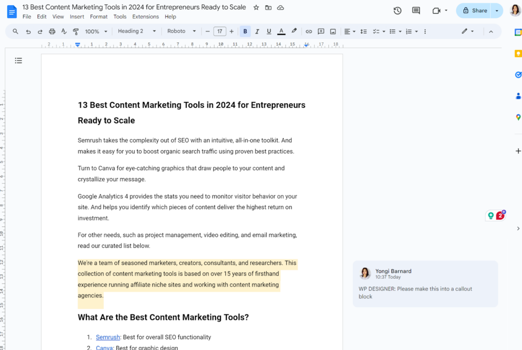For an effective content marketing setup, start with our top three tool recommendations. Semrush, Canva, and Google Analytics 4 (GA4) form the perfect trio to kickstart your efforts, each bringing distinct capabilities to boost your digital marketing strategy.