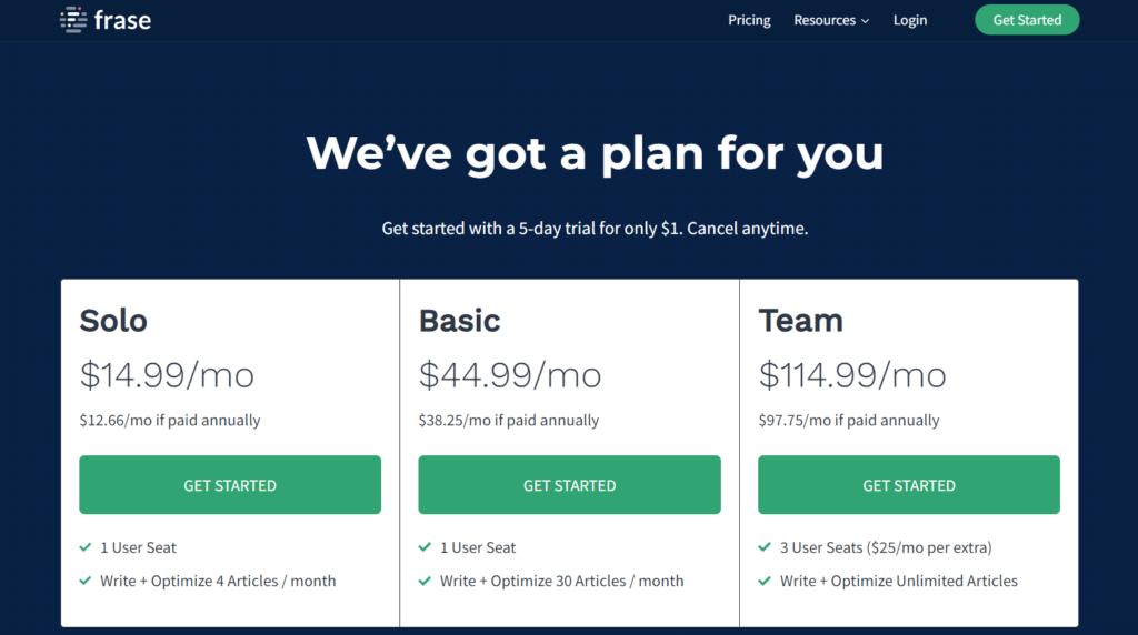 Price: Starts at $14.99/month with a 5-day trial for $1