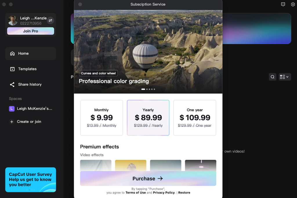 CapCut is free. CapCut Pro gives you access to premium features such as professional color grading, skin retouching, and image noise reduction.