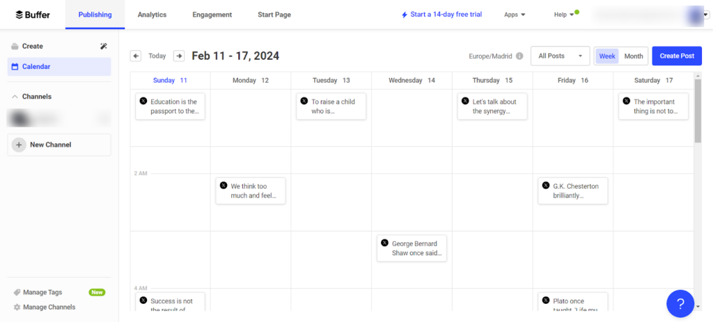 - Handles different posts: Plan and schedule various content types such as text, images, and videos.
