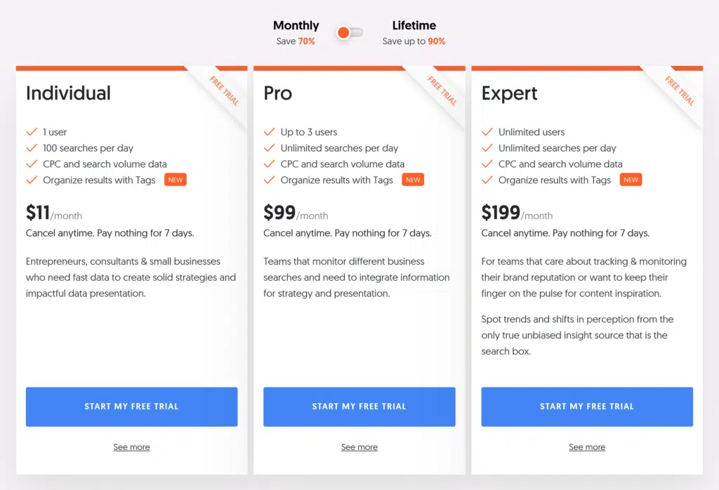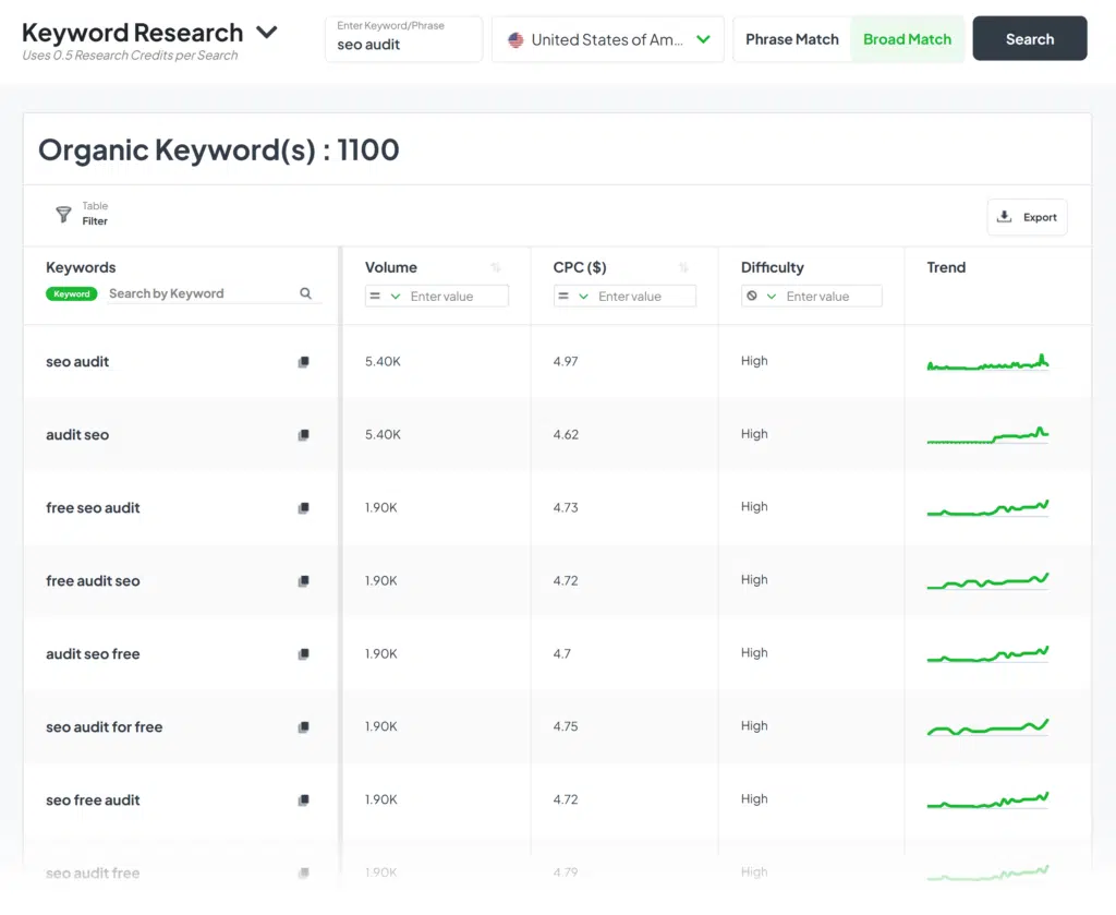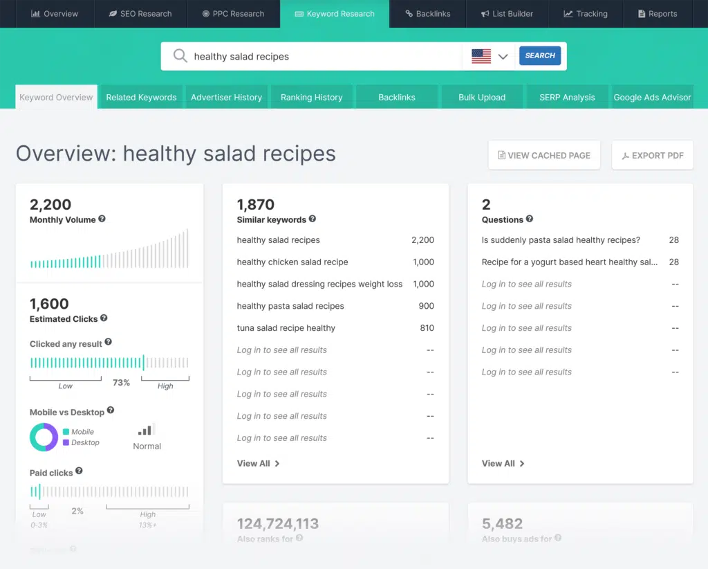 While substantial at 2 billion, its keyword database is still smaller than most other tools discussed in this article. This might be a limitation for those who need a vast keyword pool.