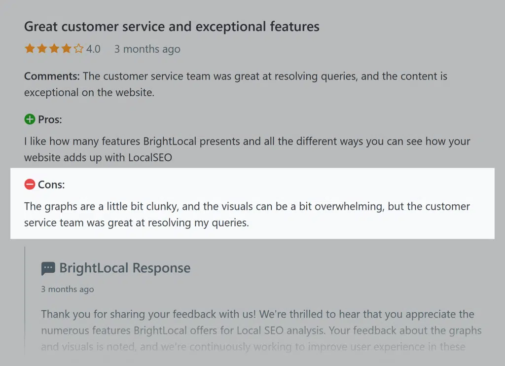 Even though I mainly stumbled upon positive user testimonials about BrightLocal, I dug deeper to discover potential cons.