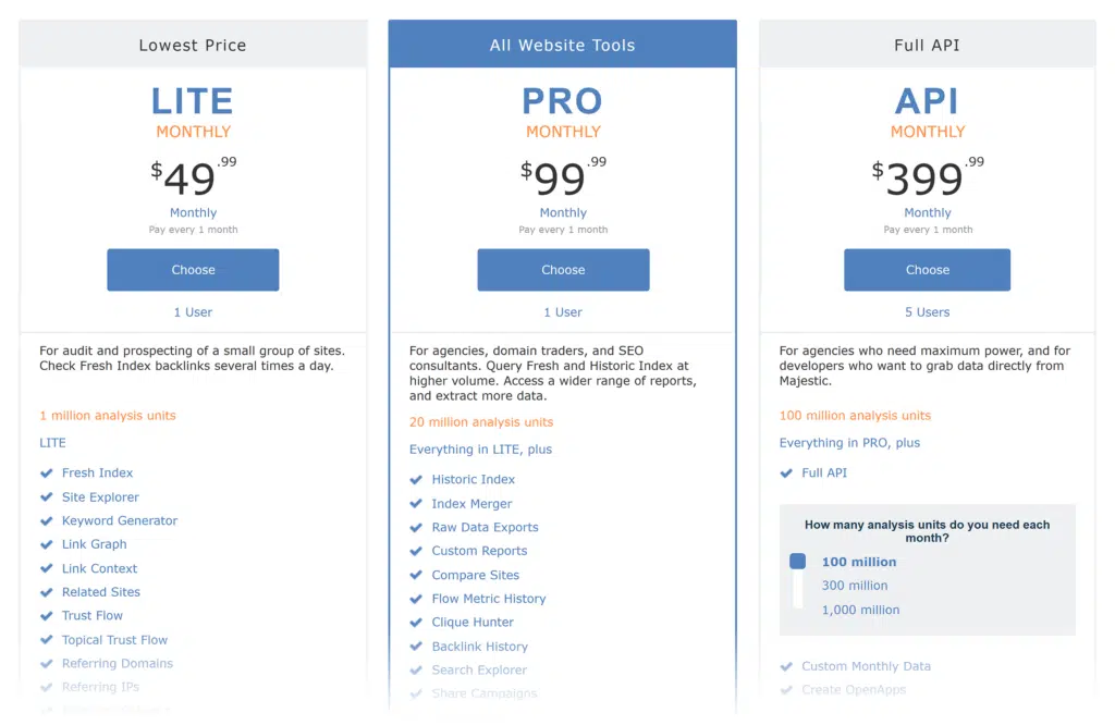 For example, you won’t have access to Content Explorer, Batch Analysis, or SERP Comparison unless you pay $249 per month.