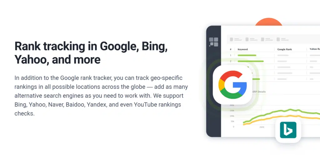 Similar to RankTracker, you can check your keyword positions in 13 different search engines, including less common ones like Bing, Yahoo, Yandex, and Naver.