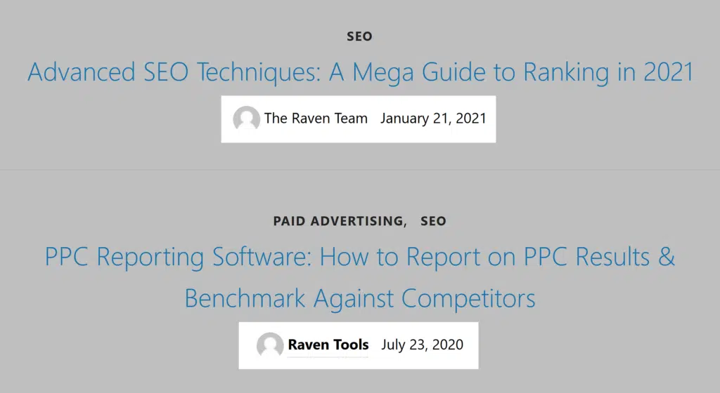 Raven’s blog is neglected, with the most recent post from 2021. This means its content is outdated, and customers can’t rely on it for up-to-date SEO guidance and techniques.