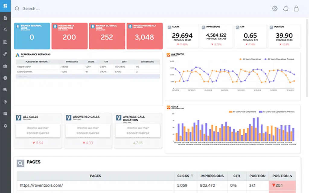 Additionally, Raven integrates easily with CallRail for call tracking, a unique feature especially valuable for local businesses and ecommerce websites.