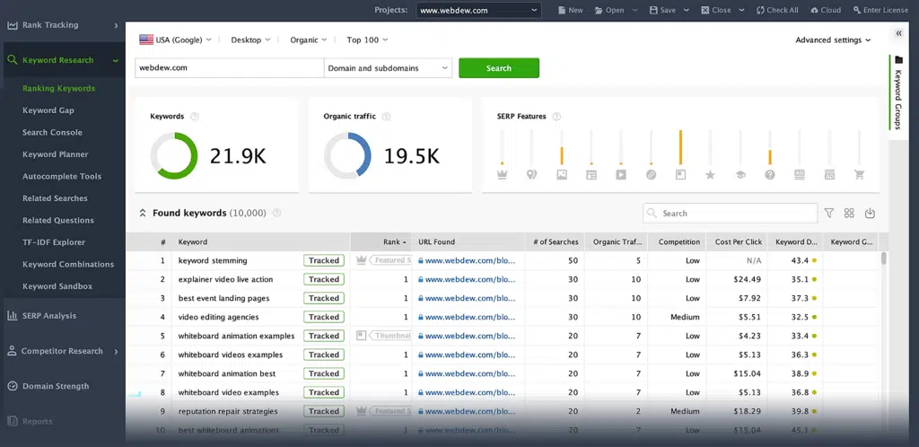 Rank Tracker is part of the SEO PowerSuite software package I mentioned earlier. Unlike online tools, Rank Tracker requires installation on your computer. This can be inconvenient if you prefer to access your tools from any device.
