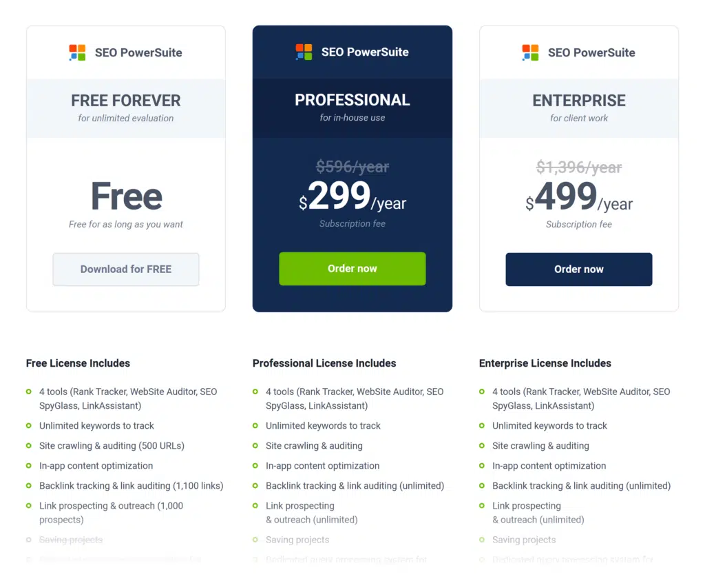 Rank Tracker is included in all SEO PowerSuite membership levels, ranging from free to $1,396 per year.