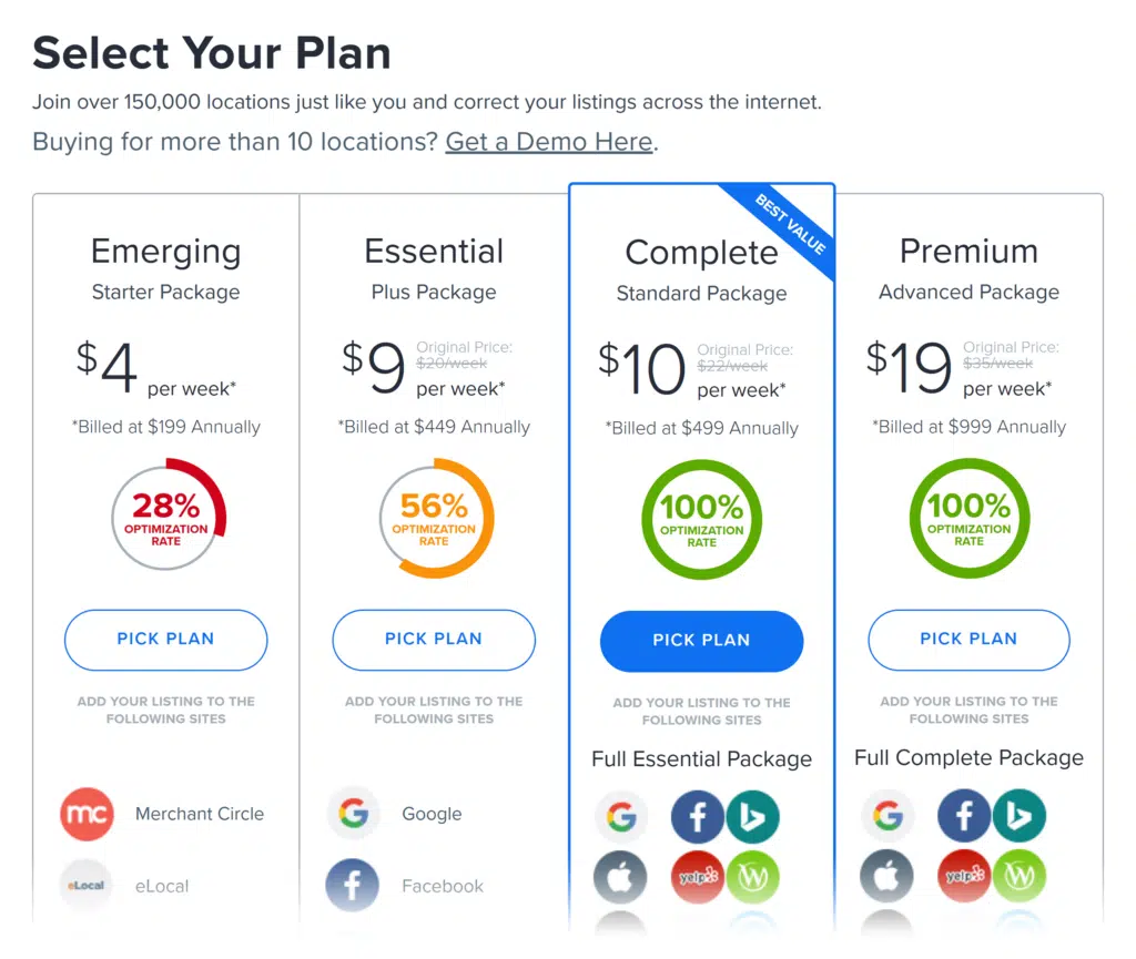 The cost depends on the package you choose and how many locations you have.