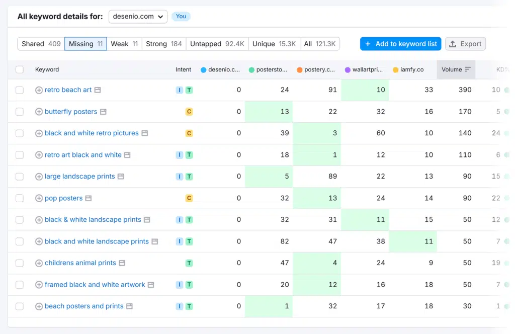 For example, if your website and a competitor rank for “affordable Van Gogh prints,” you could create more detailed content to beat them in the SERPs.
