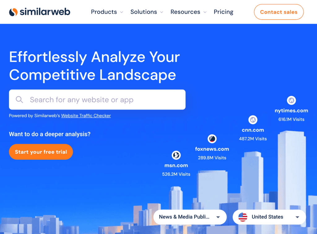 Similarweb has a suite of tools that let you dig into industry data, benchmarks, and audience overlaps. It’s a handy tool for getting an overview of a domain, category, or market.